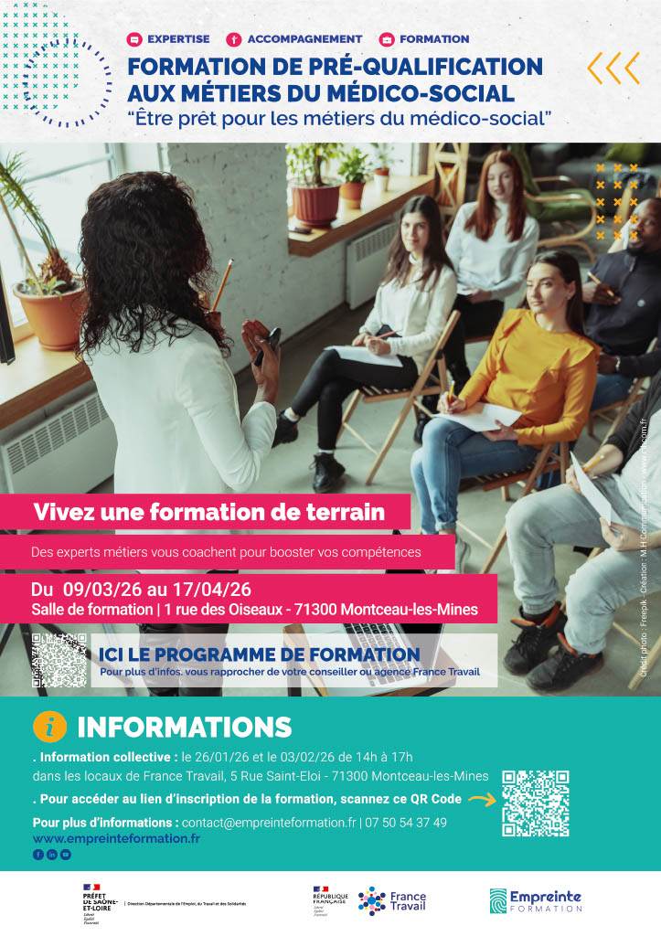 Préparer les participants à entrer dans le monde professionnel du médico-social en leur fournissant un ensemble de compétences essentielles, des connaissances techniques et des qualités humaines nécessaires pour répondre aux besoins des personnes et s’épanouir dans les métiers du secteur médico-social
